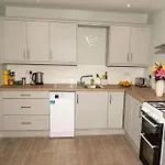 There is a fully equipped kitchen with a microwave oven and a fridge provided.
